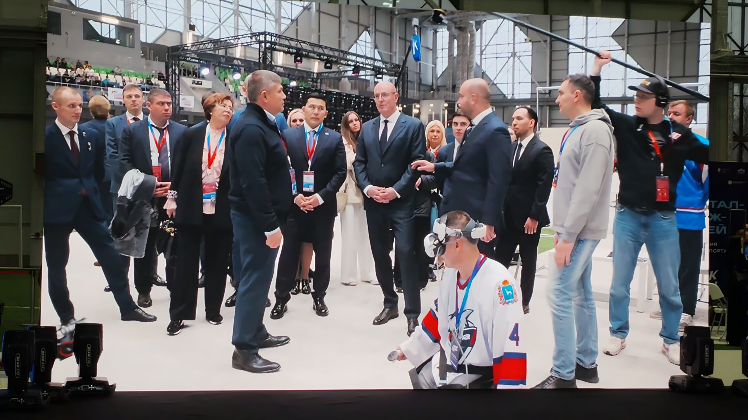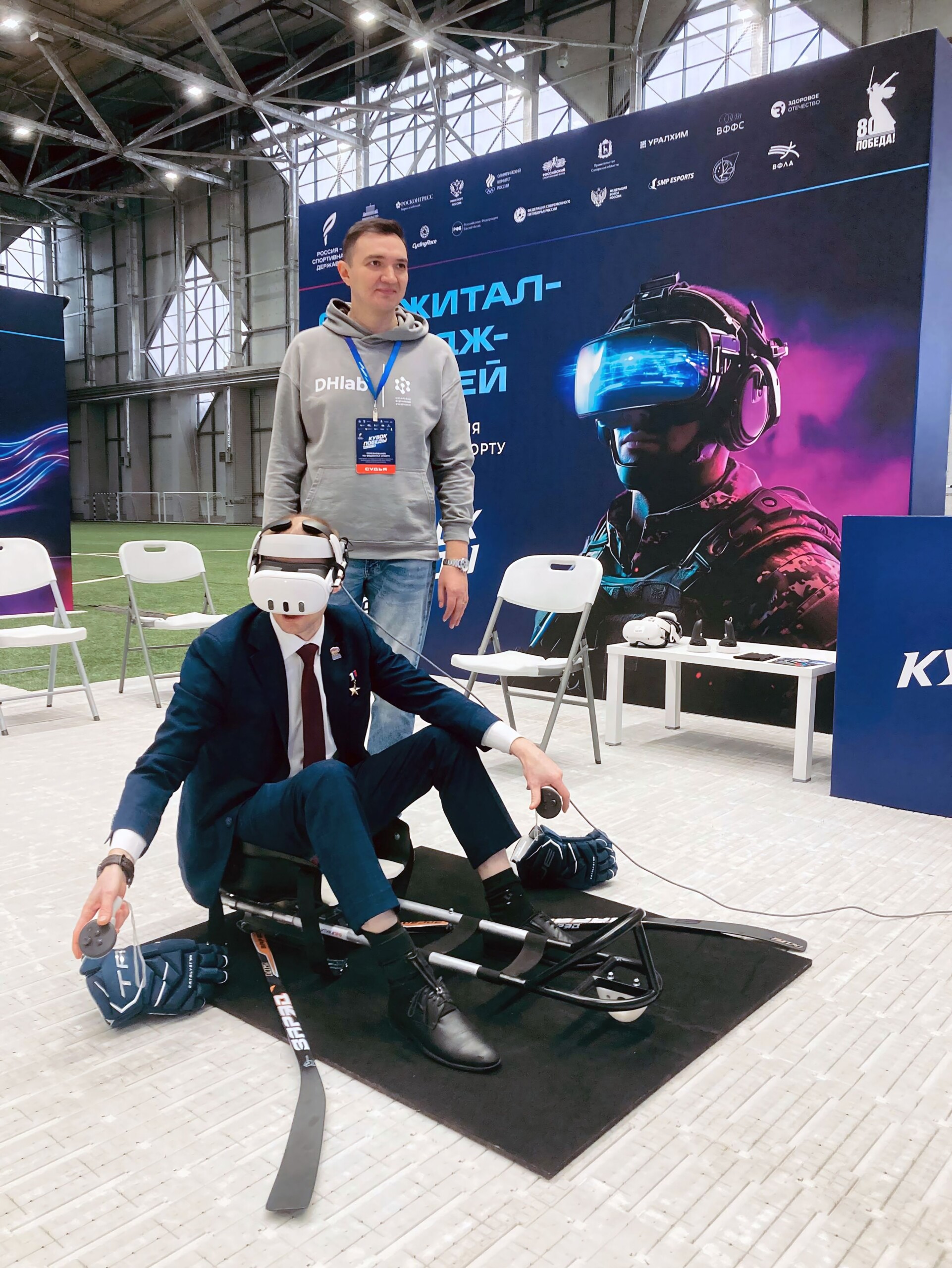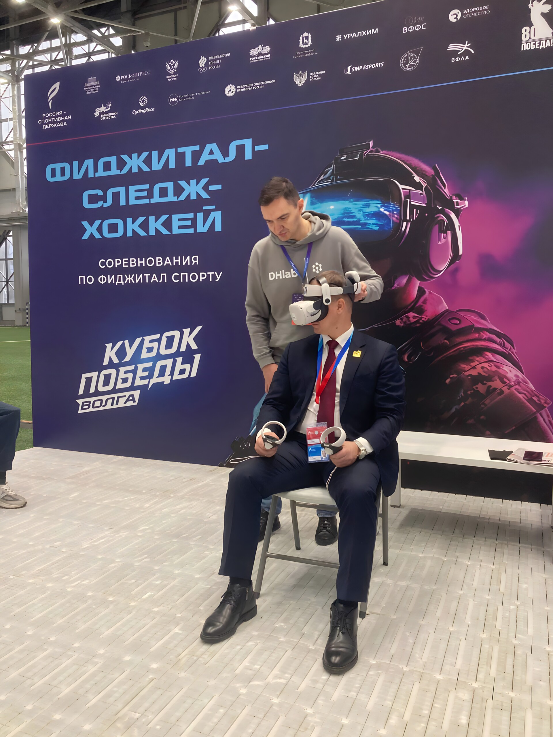 Демонстрация прототипа VR-тренажёра «VR следж-хоккей: Вызов» на площадке «Кубка Победы. Волга», форум «Россия – спортивная держава», Самара, ноябрь 2025.