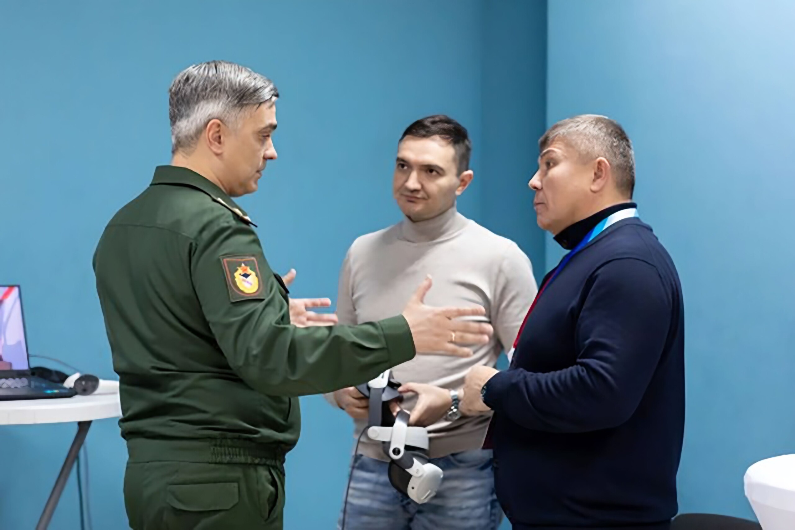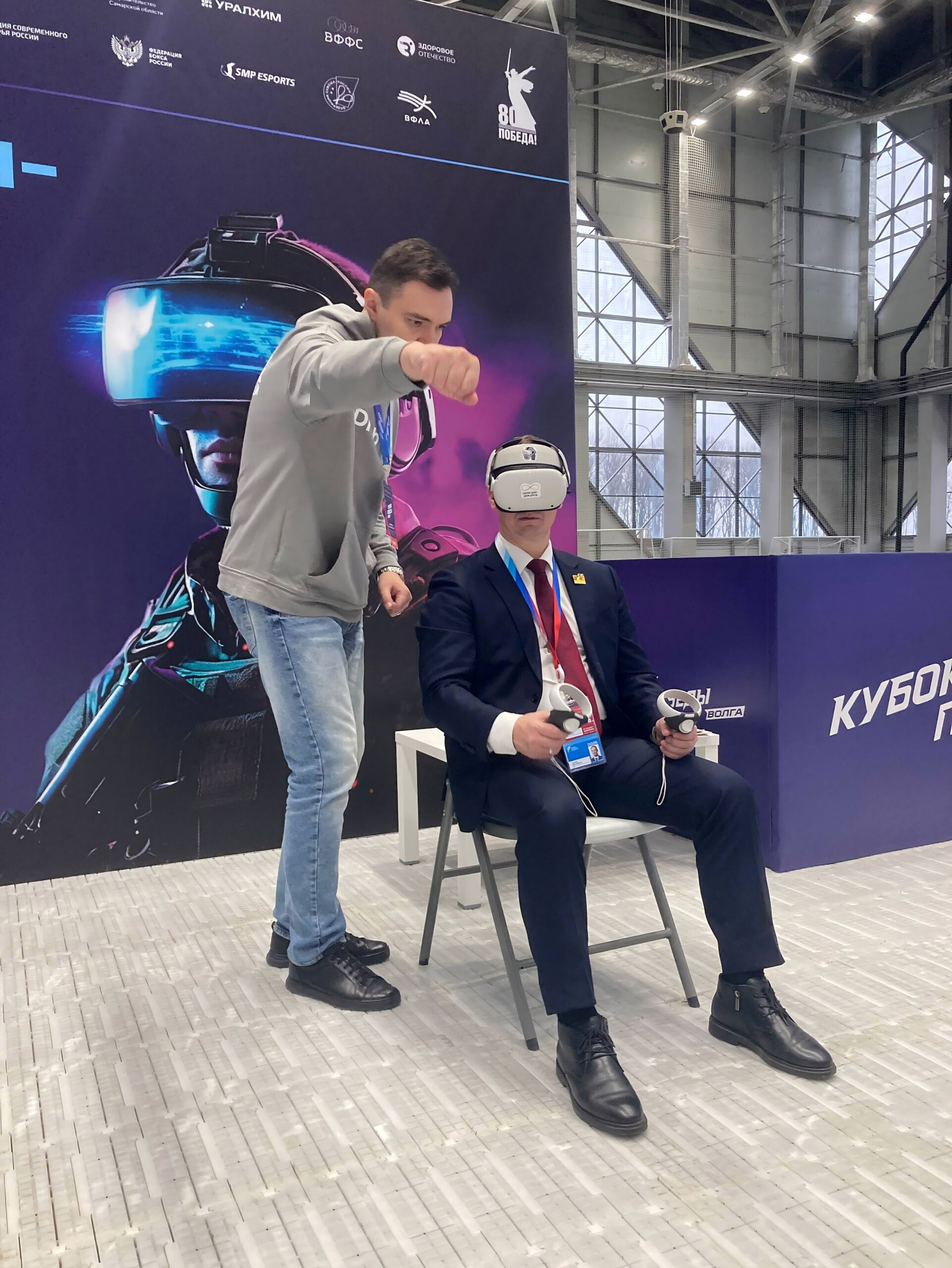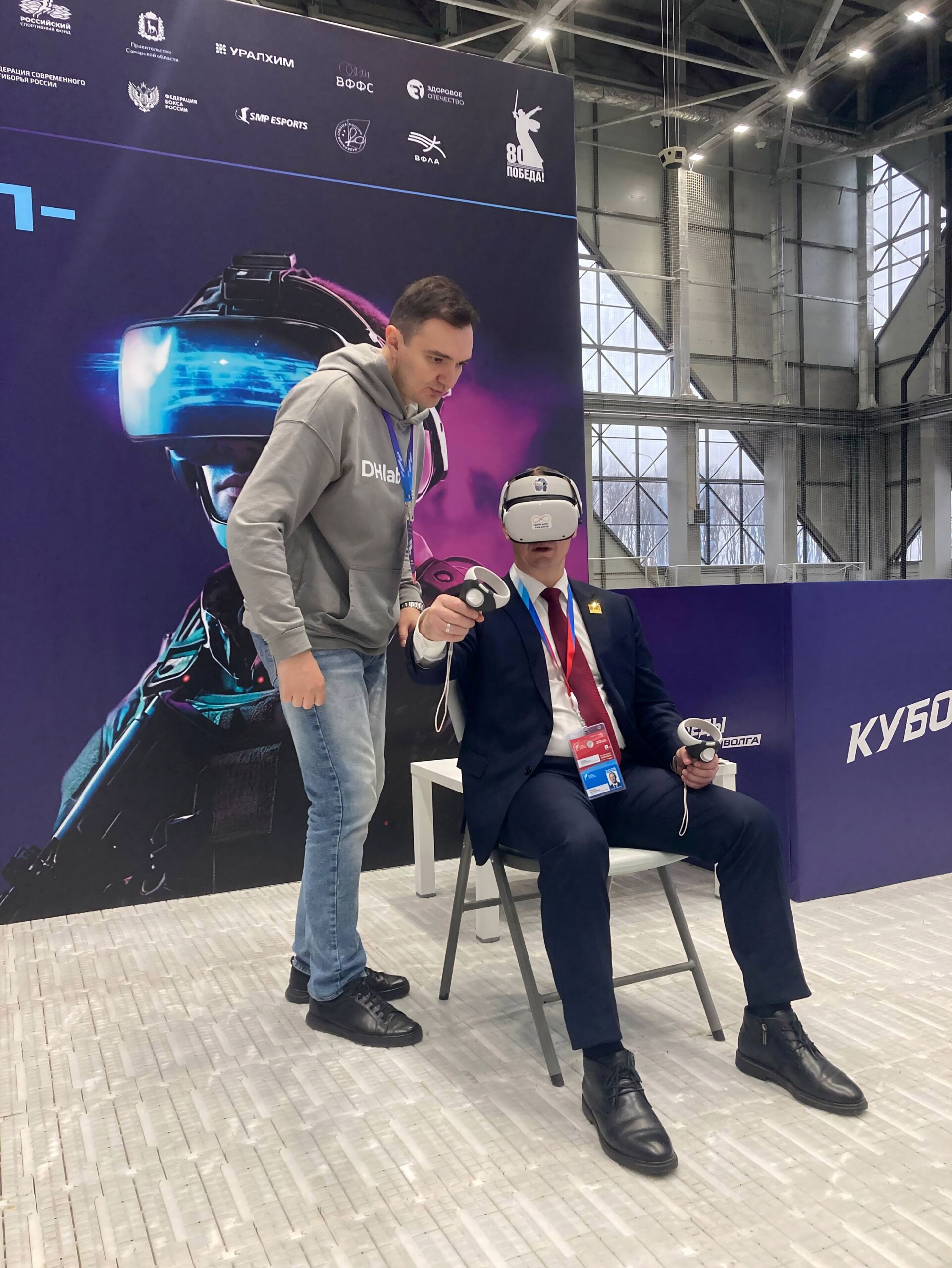 Демонстрация прототипа VR-тренажёра «VR следж-хоккей: Вызов» на площадке «Кубка Победы. Волга», форум «Россия – спортивная держава», Самара, ноябрь 2025.
